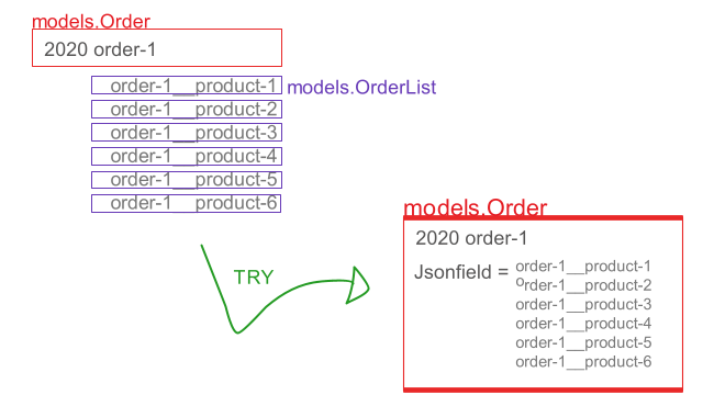 주문 20,000 + 품목 100,000 (2 model)의 품목 데이터를 json으로 변경하여